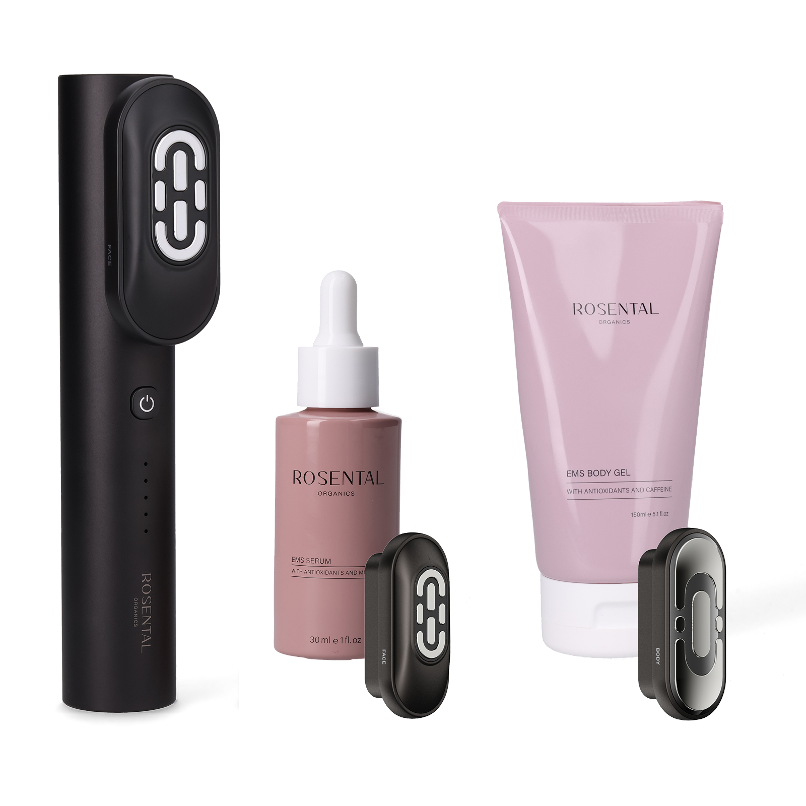Das BeautyDock+™ Set umfasst 2 sorgfältig formulierte Pflegeprodukte zur ganzheitlichen Anwendung: EMS Serum & EMS Body Gel.